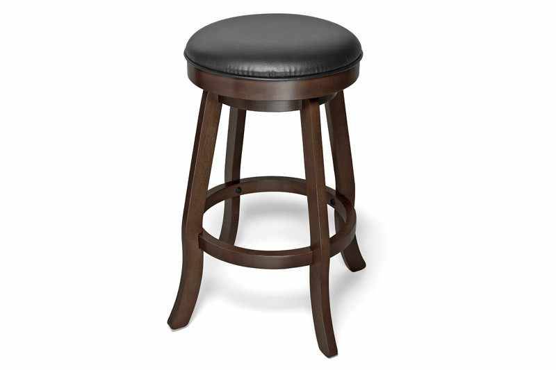 Constructed from solid wood with a cushioned seat that swivels, the Traditional Backless Pub Stool perfectly complements your favorite billiard table or game room furnishings. You will sit comfortably on the 30" high seat made of man-made materials. Available in Espresso, Nutmeg, and Rustic Dark Brown Finishes.