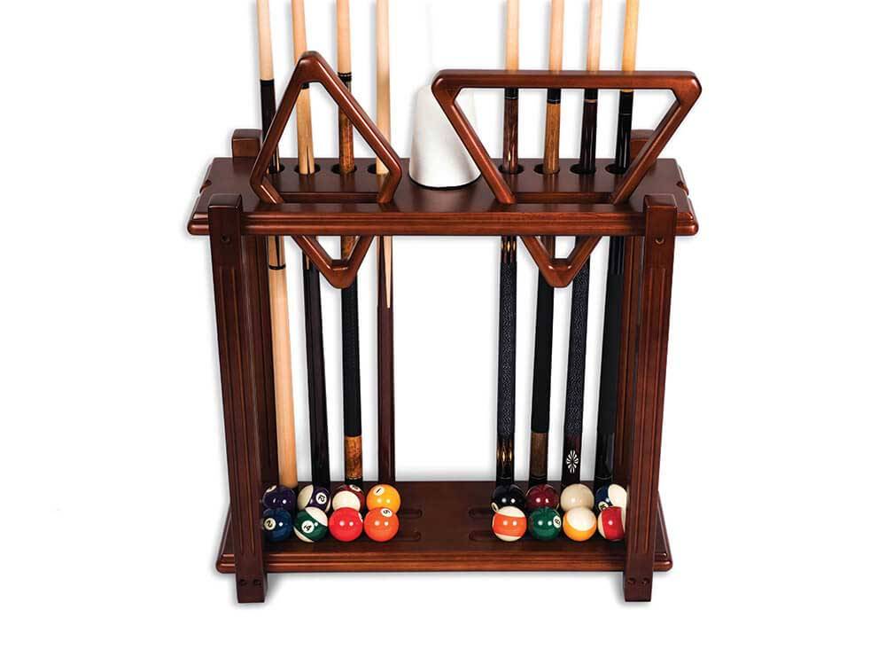 The Presidential Billiards Straight Floor Rack is an elegant storage solution for your billiard table accessories.