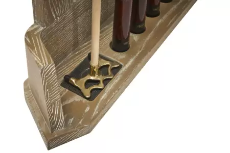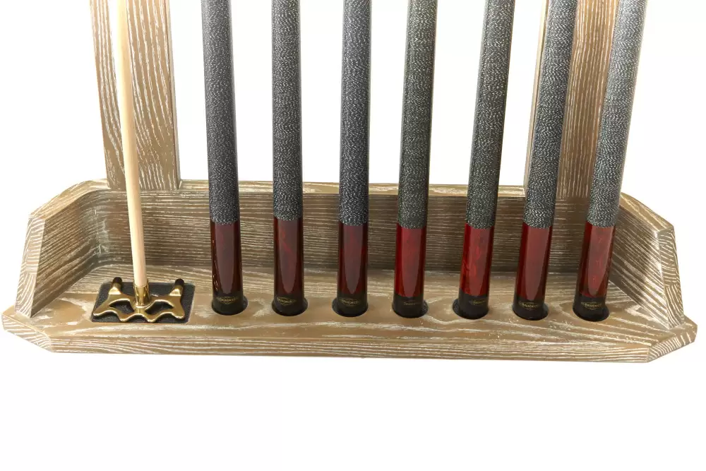 A match to the Sagrada pool table, the Sagrada wall rack features the same unique Sandwashed finish. Designed to hold eight cues or seven cues and the bridge stick.