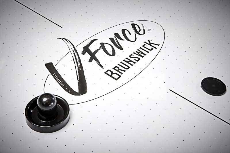 The table for performance in Air Hockey® since Brunswick invented the game more than 30 years ago, the V-Force 2.0 table features dual abacus scorers and exceptional speed of play. Aluminum rails with powder-coated metal corners accelerate the action. Super slick, scuff-proof "ice" helps keep the table looking sharp even after hours of intense competition.