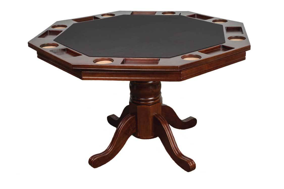 This two-in-one 48″ octagon poker table is a convertible poker dining table that flips over to suit the occasion.