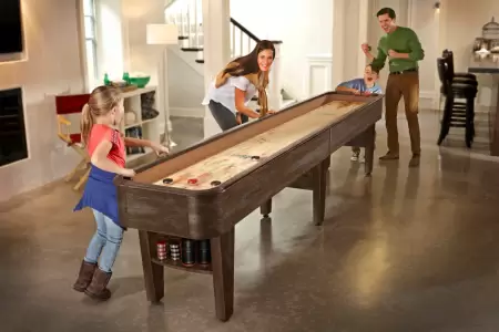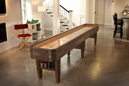 Elevate your game room with the Concord shuffleboard table, featuring a perfect blend of function and style.