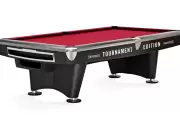 The Gold Crown VI Tournament Edition table features longer rails and tighter pockets engineered to strict World Pool-Billiard Association specifications. Table decals included.