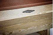 A beefy billiard table possessing a unique Sandwashed finish and mother of pearl sights, Sagrada offers great playability while drawing the admiration of onlookers and players alike.