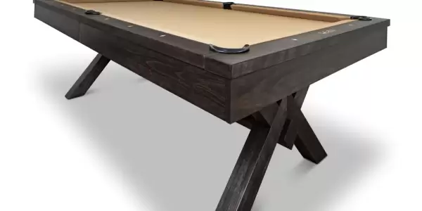 The Taft pool table is a seamless blend of simplicity and elegance, featuring a hand-stained Black Bronze finish that enhances the natural warmth of the wood.