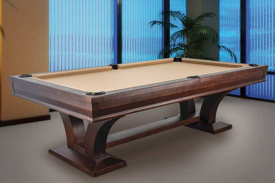 The Hamilton pool table is an elegant, solid wood table hand-finished in an espresso color. The sweeping arc of the legs gives this table an elegance that will look stunning in any home.