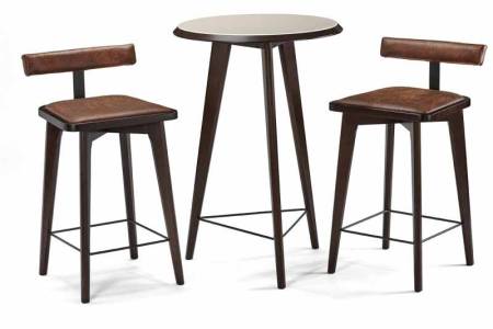Sao Bento is a Brazillian inspired design that features a tempered glass table top, metal wire frame footrest and solid wood legs. Take your seat on matching bar stools that are equally unique with their low profile upholstered back & seat and metal wire frame footrest. Set includes (1) pub table and (2) stools. Sao Bento is available in Chestnut and Espresso finishes.