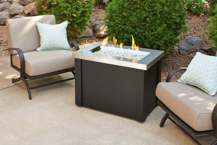 Easy to move and fits in any space, the Stonefire Gas Fire Pit Table has everything you need in both a table and a fire pit.