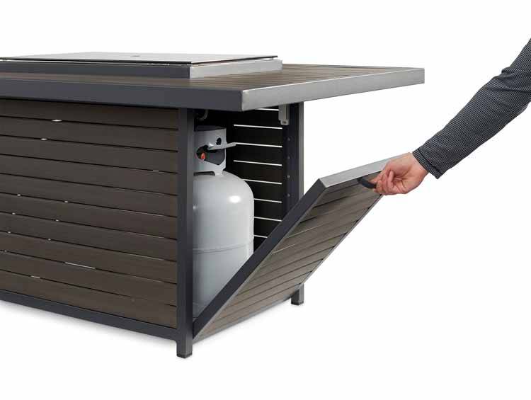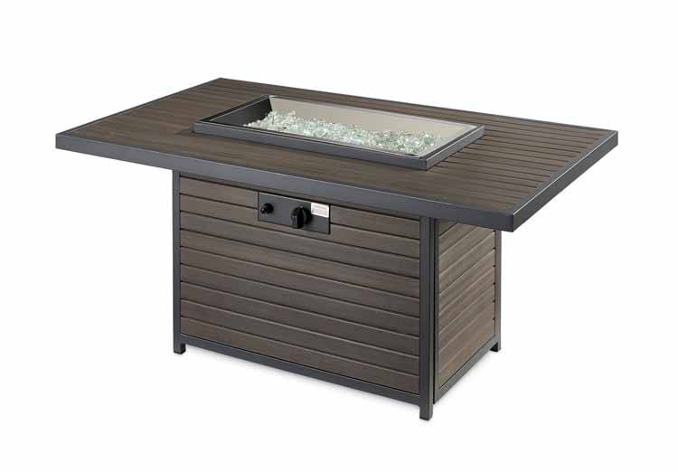 The easy to care composite deck top and base brings a modern, but warm look to your outdoor room. The unique elevated 12x24" Crystal Fire® Plus Burner is UL listed for safety and will dazzle your guests.