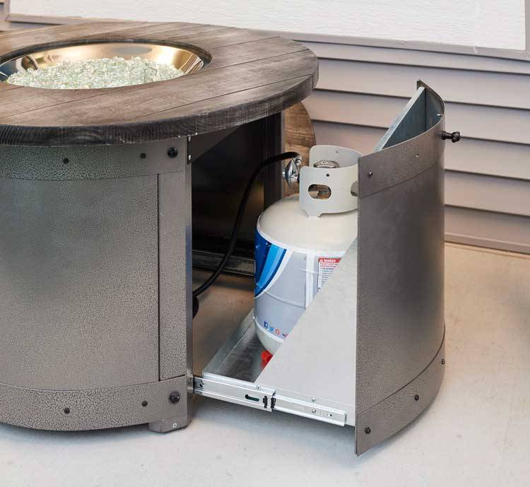 - Sliding access door conceals standard 20 lb. propane tank in base