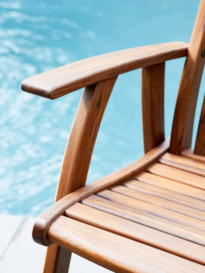 Welcome outdoor entertaining with open arms with the Franklin Dining Arm Chair from Jensen Outdoor. Fill your days with breezy brunches and your nights with backyard barbecues by pairing this stately chair with your favorite guests and any Ipe dining table. Settle in for leisurely meals and luxurious comfort with a supportive backrest, roomy seat and sculpted legs carved from individual slats of hardy Ipe timber.