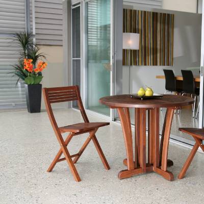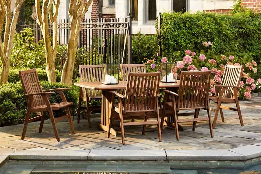 The Amber bench designs host comfort in contoured, ergonomic seating, while most of the Beechworth table utilizes larger Ipe slats for a more traditional, cottage style.