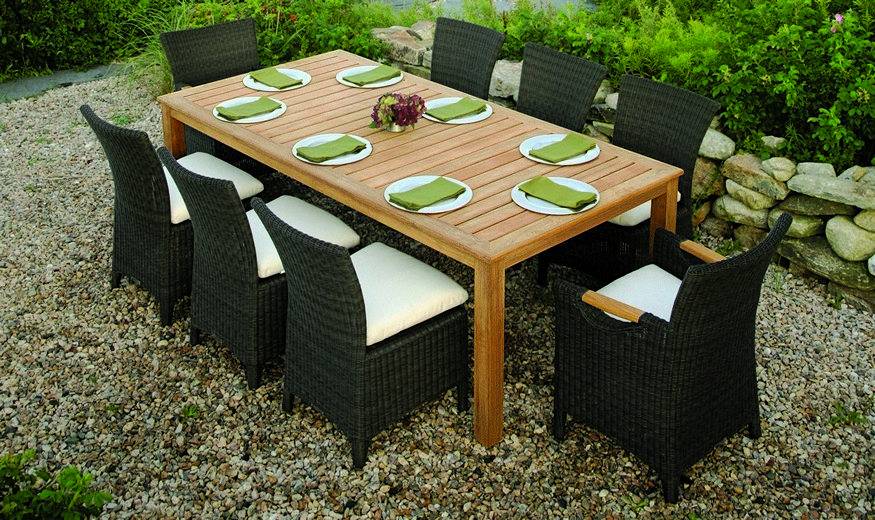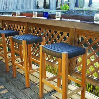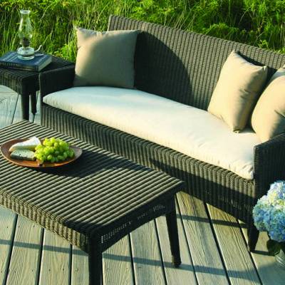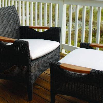 The design of the Culebra collection recalls the windswept beauty of the Spanish Caribbean, with flowing lines, integrated teak accents on most pieces, and textured charcoal wicker that simulates vintage, weathered furniture.
