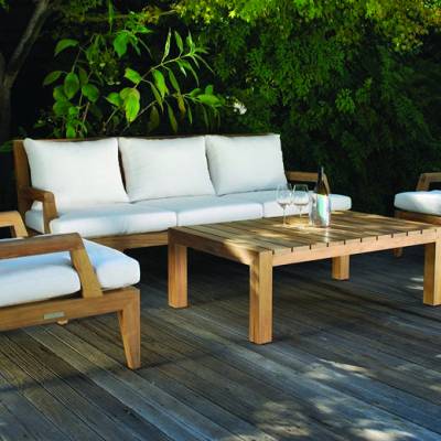 Sophisticated and comfortable, this solid teak collection adapts to a range of architectural styles and spaces.