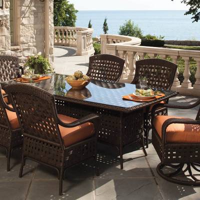 Slip away into your harbor of solitude, while relaxing on this graciously styled seating and dining collection. Haven features large open weaving, wide arms, and high backed support, while Lloyd Flanders plush cushioning provides deep seated delight.