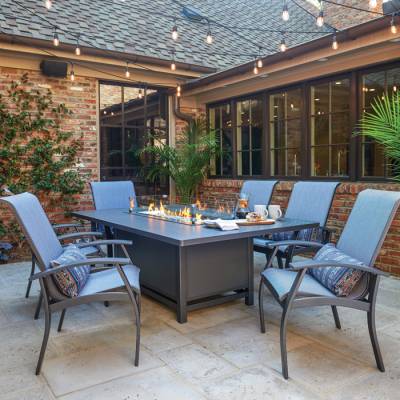 Telescope's Belle Isle cushion seating, paired with a 42" Firepit.