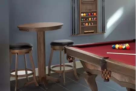 Constructed from solid wood with a cushioned seat that swivels, the Traditional Backless Pub Stool perfectly complements your favorite billiard table or game room furnishings. You will sit comfortably on the 30" high seat made of man-made materials. Available in Espresso, Nutmeg, and Rustic Dark Brown Finishes.