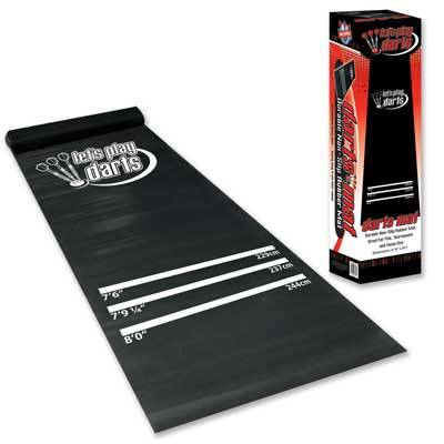 Suitable for tournament and home use, this heavy duty 3mm thick rubber mat features a durable non-slip micro grip. Printed with Let's Play Darts logo and international throw lines.