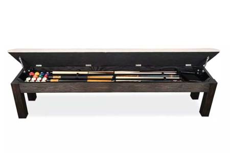 Presidential Billiards' coordinating pool table accessory storage benches are a great way to transition your pool table into a family dining table. The Kariba Charcoal Brown Bench with Cream Linen features a simple yet elegant design that will fit perfectly with various of the Presidential Billiards Pool Tables. The bench forms part of the Kariba Gameroom Collection.