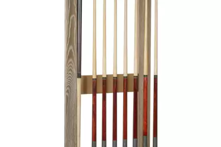 A match to the Sagrada pool table, the Sagrada wall rack features the same unique Sandwashed finish. Designed to hold eight cues or seven cues and the bridge stick.