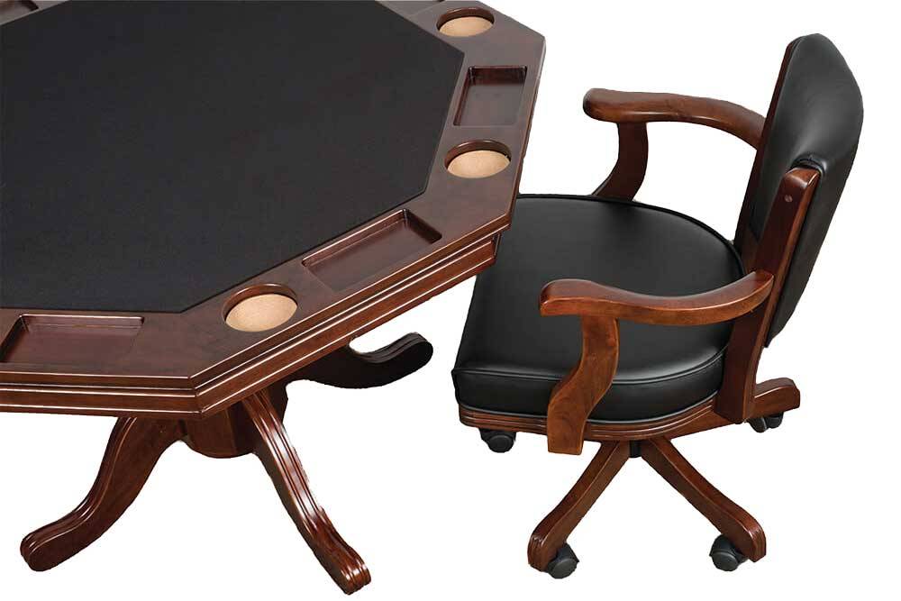 This two-in-one 48″ octagon poker table is a convertible poker dining table that flips over to suit the occasion.