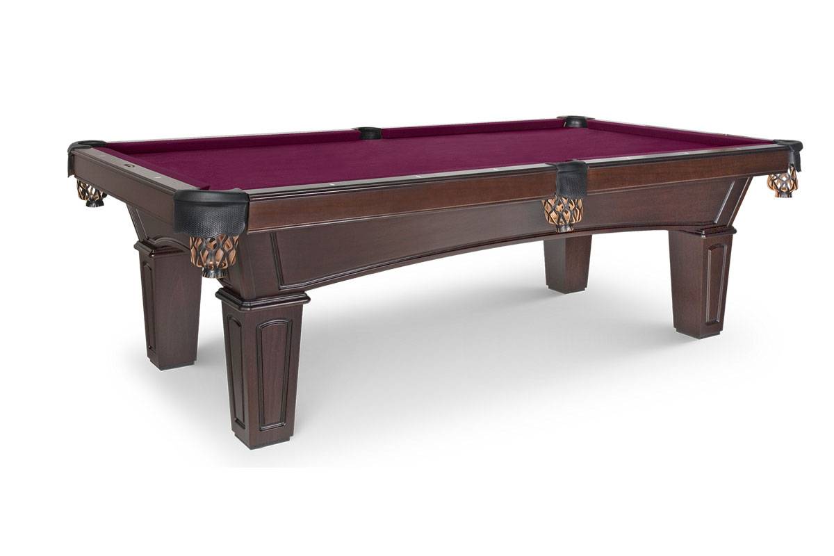 The Belmont Pool Table is made from Solid Tulipwood and features traditional style arched cabinet design with classic tapered legs and router detail.