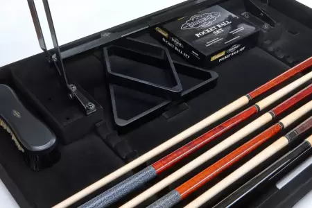The Brunswick Billiards Storage Drawer is a convenient and practical accessory that can be attached to the underside of your Brunswick Billiards table, providing ample space for storing all the accessories, including cues stored at full length.