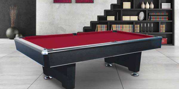 The Black Diamond pool table is an affordable, contemporary billiard table with black laminate and metal corner caps & trim. The laminate is burn and scratch resistant. The kids will love this black billiard table.