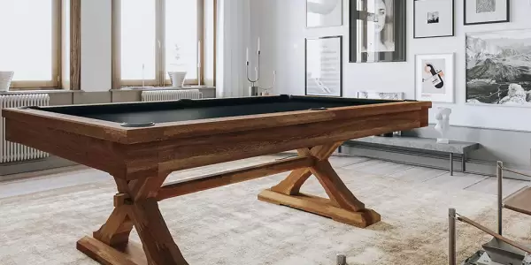 The Taft pool table is a seamless blend of simplicity and elegance, featuring a hand-stained Black Bronze finish that enhances the natural warmth of the wood.