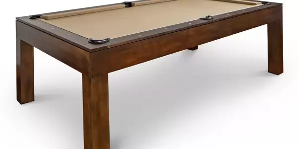 The Kariba charcoal-brown pool table is a solid wood pool and dining table with a stylish transitional design and an in-vogue charcoal brown finish.