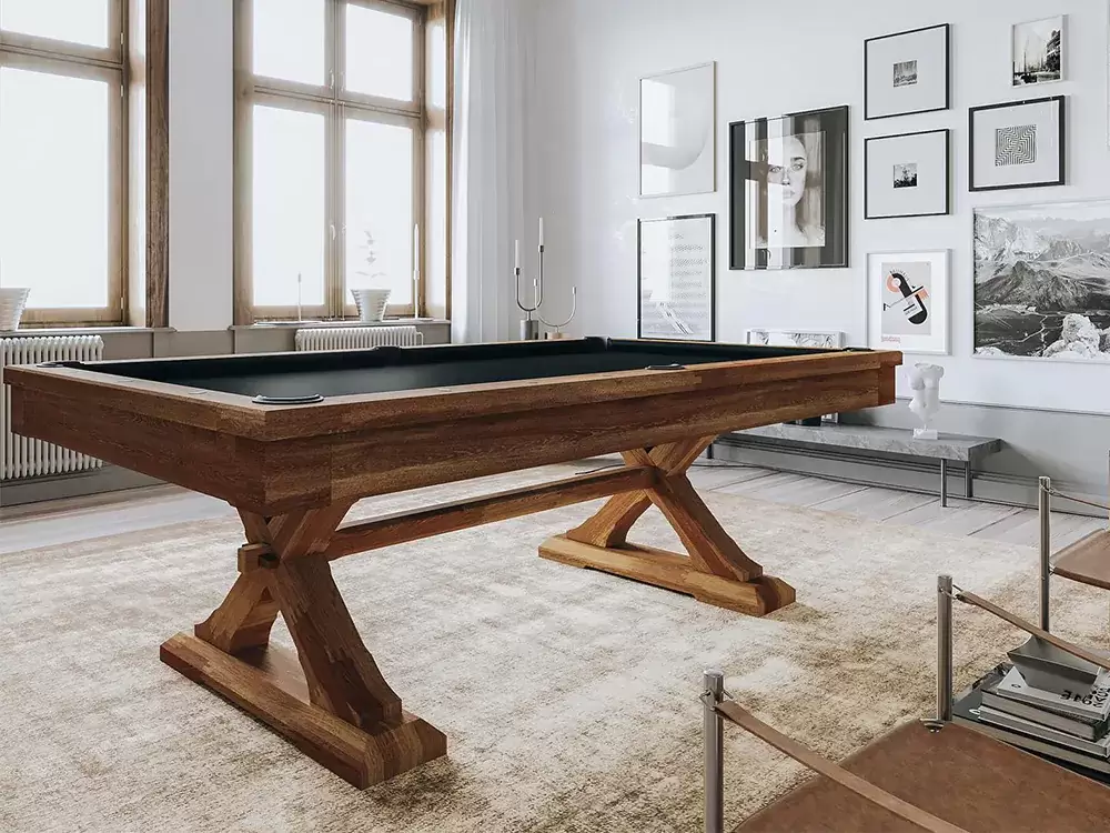 The Kennedy pool table is a solid wood pool table that is sturdy, stylish pool table with a beautiful natural finish that highlights the wood’s unique grain and warm tones.