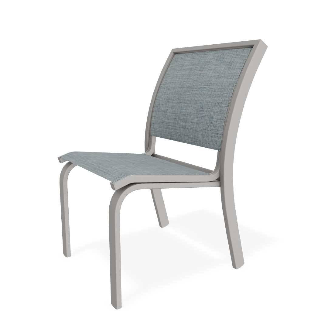 The chair's sleek design features include a fully enclosed back and crisp lines that give it a more contemporary look. The items are constructed of tubular aluminum and are built for years of enjoyment.