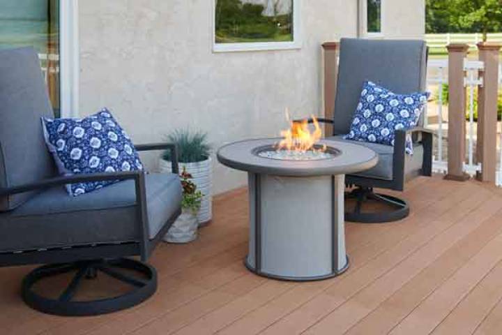 The easy to care composite deck top and base brings a modern, but warm look to your outdoor room.