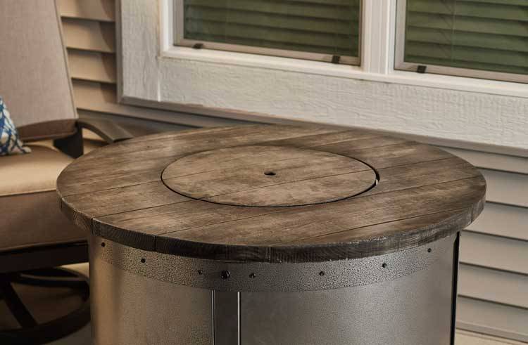 The Edison Gas Fire Pit Table combines industrial design with a unique, modern look. The powder-coated steel base accentuates the aged finish of the Weathered Grey Barnwood Supercast™ concrete top to create a beautiful statement in your outdoor room. Take in the warm, mesmerizing feel of the glowing fire as you relax or entertain guests.