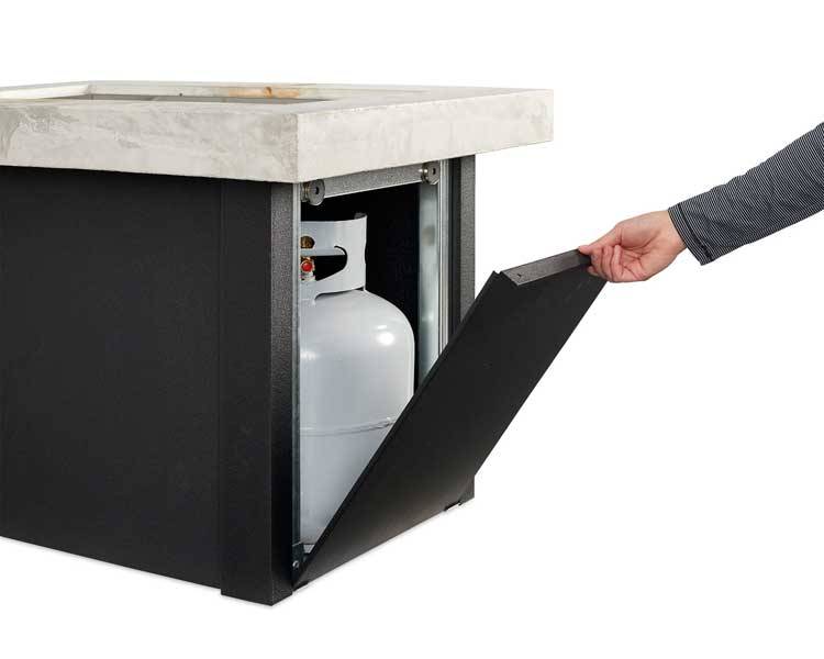 - Sliding access door conceals standard 20 lb. propane tank in base
