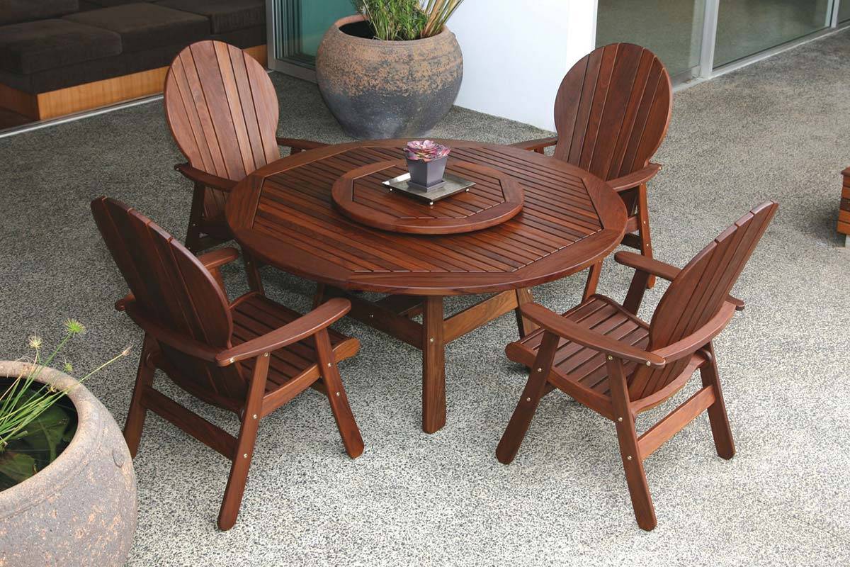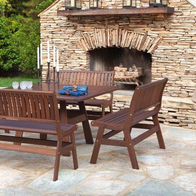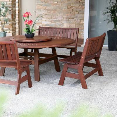 The Amber bench designs host comfort in contoured, ergonomic seating, while most of the Beechworth table utilizes larger Ipe slats for a more traditional, cottage style.
