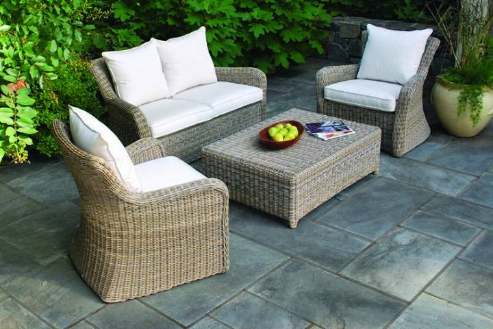 The Southampton collection is an updated version of classic, open-weave wicker furniture.