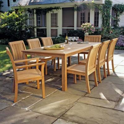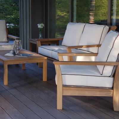 All pieces are generously proportioned, comfortable, and constructed from solid teak.