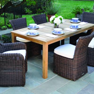The fiber’s variegated tones create a highly natural appearance that pairs well with Kingsley~Bate's assortment of teak tables.