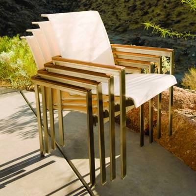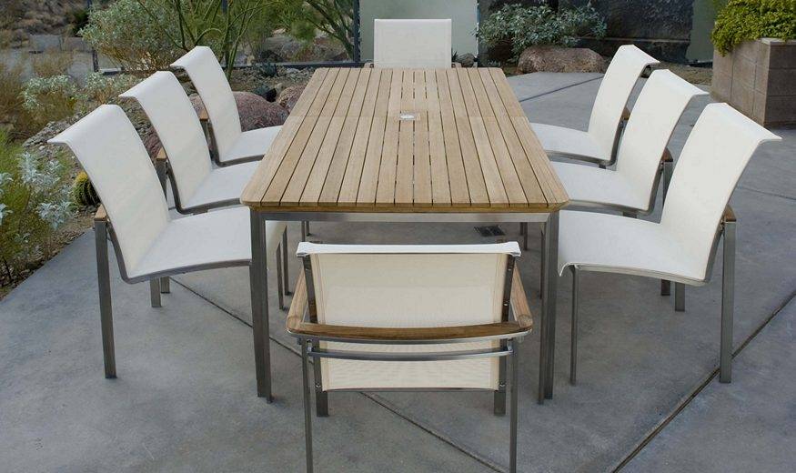 All pieces are crafted from the finest #304 stainless steel and premium teak. Complementary tables are constructed with heavy duty steel frames and spectacular teak wood tops.