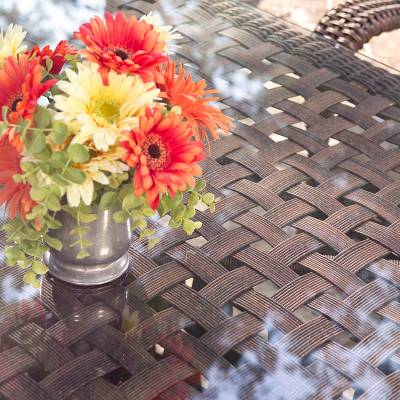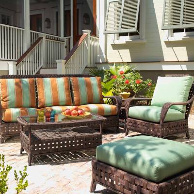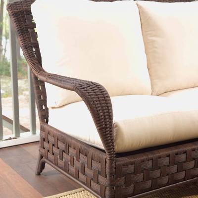 Slip away into your harbor of solitude, while relaxing on this graciously styled seating and dining collection. Haven features large open weaving, wide arms, and high backed support, while Lloyd Flanders plush cushioning provides deep seated delight.