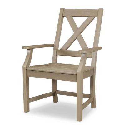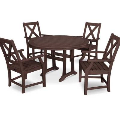 Have you imagined yourself enjoying a quiet outdoor breakfast with your family on a mild summer morning? It sounds lovely, doesn't it? With the Braxton 5-Piece Nautical Trestle Arm Chair Dining Set, everyone will have plenty of room to enjoy the birds chirping while indulging in some homemade blueberry waffles. Create a relaxing and stylish outdoor dining experience with the Braxton Dining Side Chair. BONUS: maple syrup is easy to clean off of POLYWOOD furniture — simply wipe away with a damp cloth.