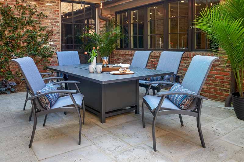 Telescope's Belle Isle cushion seating, paired with a 42" Firepit.