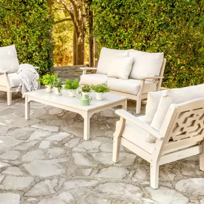 Comfortable luxury that feels right at home. Warm and welcoming, the Martha Stewart by POLYWOOD Chinoiserie Deep Seating collection invites you in with its classic styling, soft cushions, and embracing silhouette.