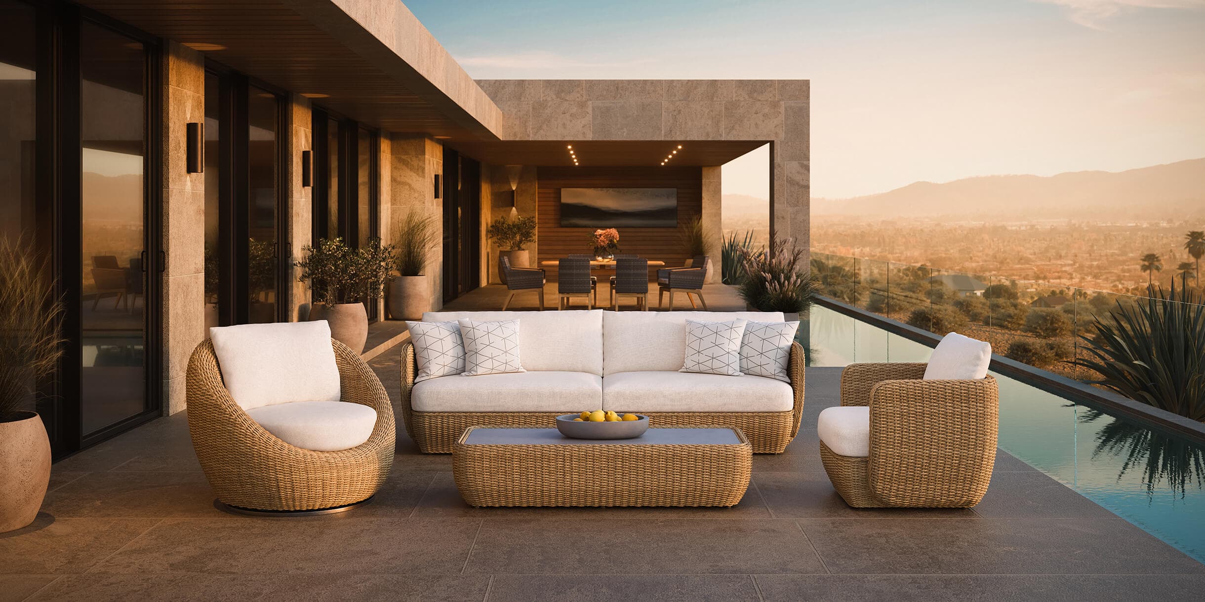 Whether placed on a patio, by the pool, or in an outdoor lounge setting, the Velo collection brings sophistication and contemporary style to any space. Complete your outdoor experience with the perfect blend of modern materials and design, built to endure everyday use.