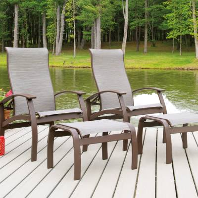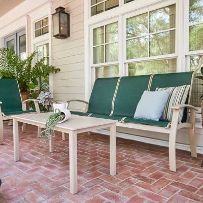 Constructed of tubular aluminum with Marine Grade Polymer accents, the Belle Isle Cushion Collection combines the comfort Telescope is known for with durable worry-free materials.