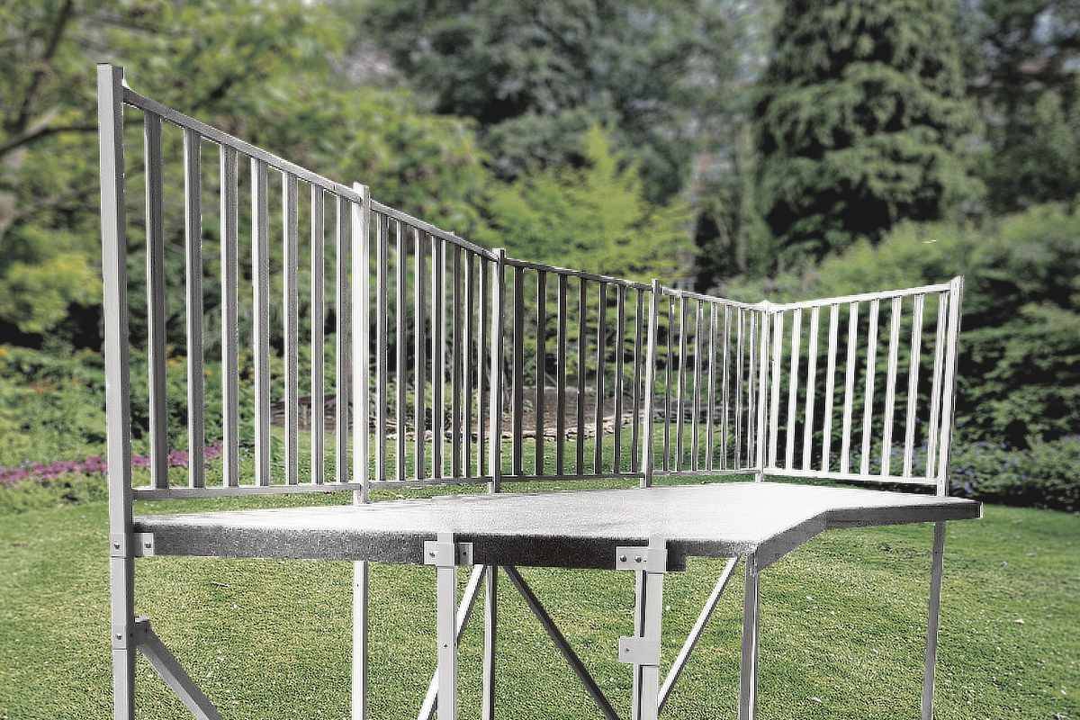 Freestanding two-piece fantail deck designed for new pools and aftermarket additions to existing pools.